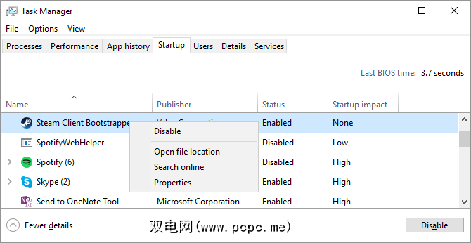 如果您不确定在此禁用什么,请查看我们的启动时不需要运行的前10个项。对于很多人来说,常见的罪魁祸首可能包括Spotify,Steam,iTunes和Skype。