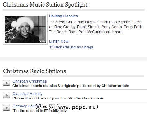 您可以从九个不同的以圣诞节为主题的广播电台中进行选择,包括圣诞节经典曲目,圣诞节摇滚和圣诞节歌曲前40名。