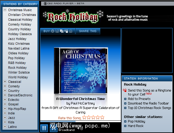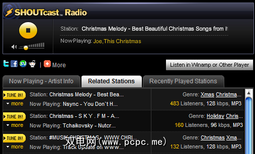 单击Web-Radio Player在新选项卡或窗口中打开它,然后选择您的圣诞节电台并享受。