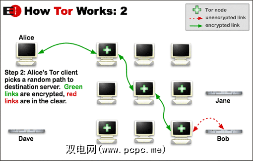 The Tor服务的工作原理是通过称为“洋葱路由网络"的路由来路由您的Web流量。这只是一个奇特的说法,它表示您创建的任何流量都会随机地将自己路由到多个节点(“层"),直到最终到达目的地。因此,尽管您可能已经发起了流量,但流量最终仍到达站点服务器之前已被安全地路由到许多其他计算机。然后,服务器会看到传入的流量,但会将其标识为来自您的流量所经过的路由中的最后一台计算机。因此,您被隐藏了。