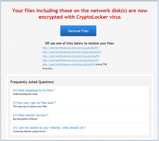尽管TorrentLocker是完全不同的动物,但它如何借鉴CryptoLocker和CryptoWall的命名和美感却是它最吸引人的地方。一旦被感染,该恶意软件就会将自己标识为“ CryptoLocker"(我曾经将其称为“有史以来最讨厌的恶意软件"),并且将包含一个简短的问答,似乎已被CryptoWall完全抄袭了。