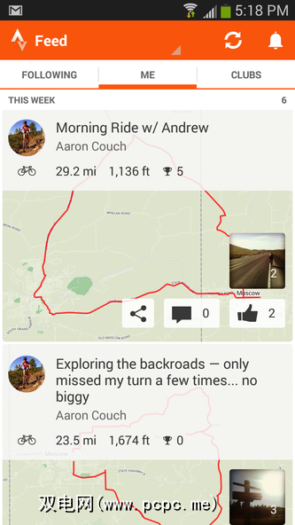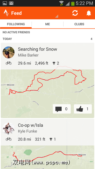 另一个很棒的社交功能是您所关注的人的活动源。您可以与所在区域的人保持最新联系,或者与其他人知道您可能不在地理位置上,但是仍然可以保持联系并通过Strava进行互动。