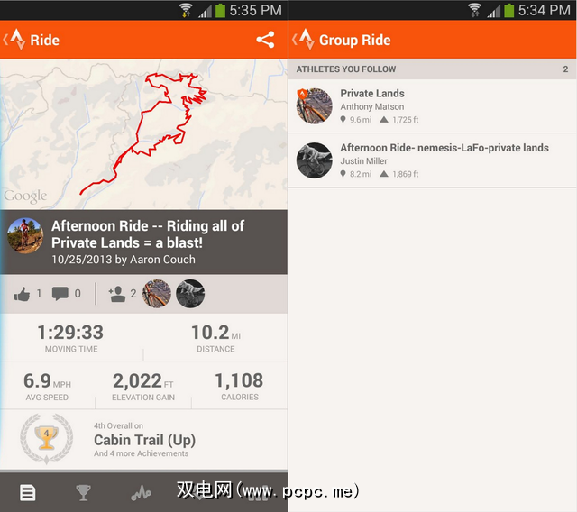 可能最大,最有用的社交功能是将您的活动与正在与之锻炼的人联系起来。查看下面的图片,您会看到其他与我一起骑特定山地自行车的运动员。