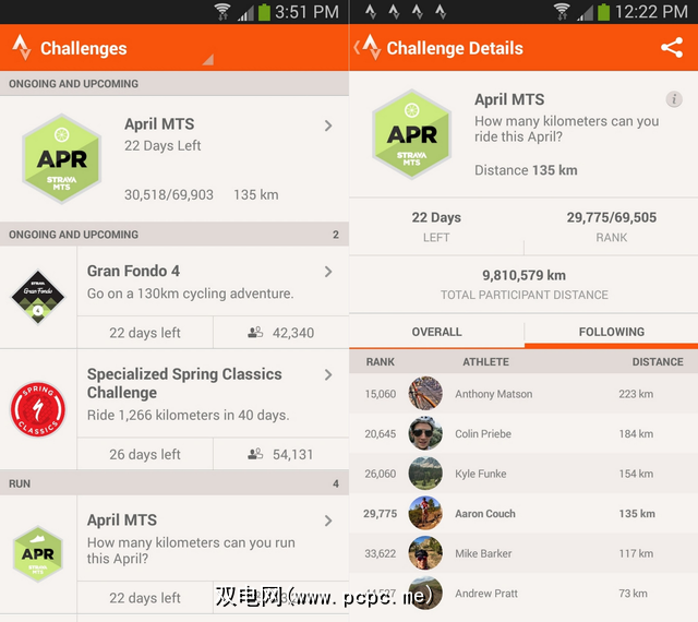 如果您想为锻炼增加更多动力,Strava面临挑战,您可以参加太。您可以将这些用于个人动机,也可以将其进度与自己认识和遵循的其他人进行比较。