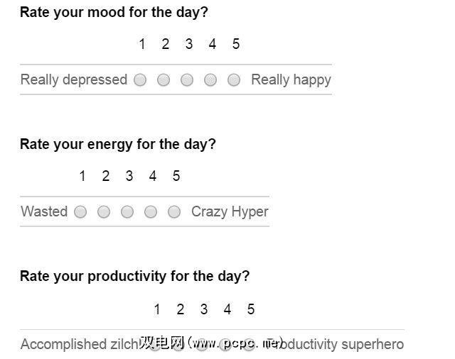 然后,创建几个问题来对诸如情绪,一天中的快乐程度以及工作效率等方面进行评分。