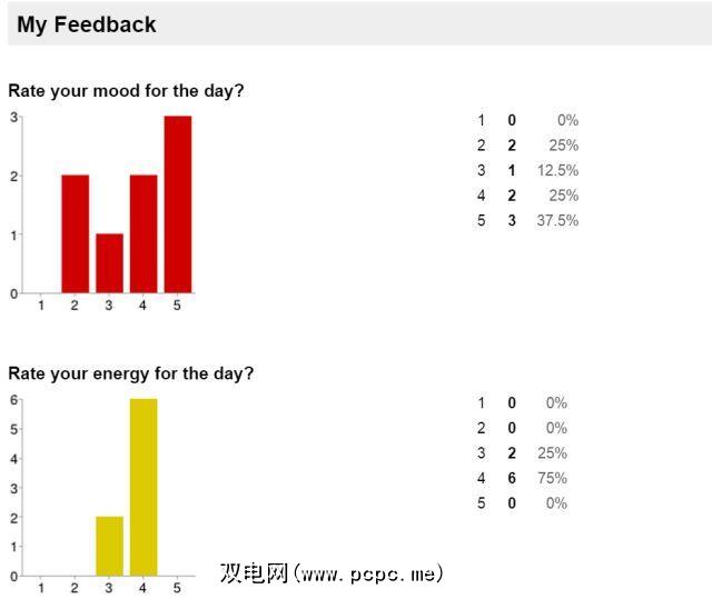 完成表单的“数据收集"部分后,您将需要添加另一部分,我称之为“反馈"。在这种情况下,基本上是生物反馈。这是您告诉您的系统您的感觉以及一天的总体情况。