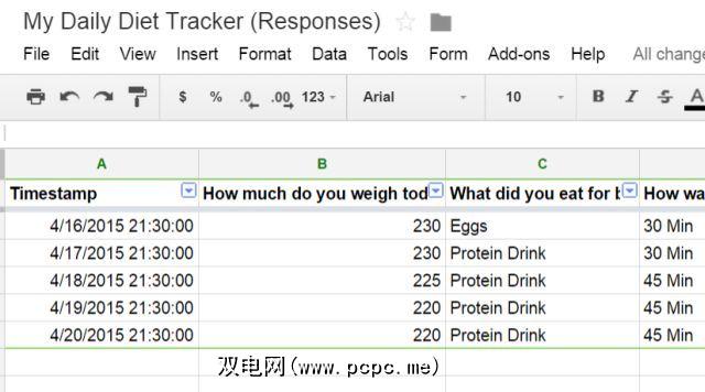 人们喜欢跟踪的最常见的事物之一就是健康。 Google表单可以帮助您同时使用一种表单,并且可以跟踪一段时间内的进度。