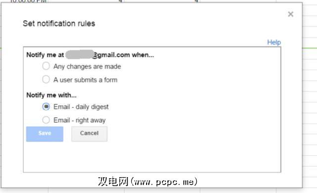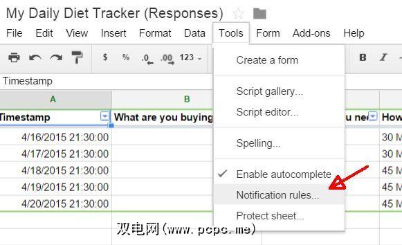 为此,在电子表格视图中,只需单击工具,然后单击通知规则...