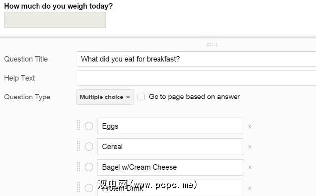 对于您只知道几个答案的任何问题,请使用“多项选择"元素。例如,当我吃早餐时,我的口味非常有限,因此在这种情况下,我会使用多种选择来记录我的早饭。