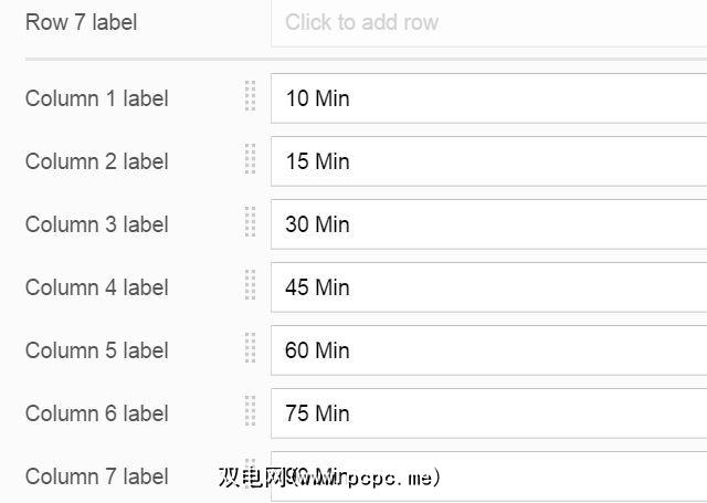 然后用时间填写列标签。或者,在您的情况下,您可能只想跟踪体重训练,因此您可以在列中列出“ reps"。