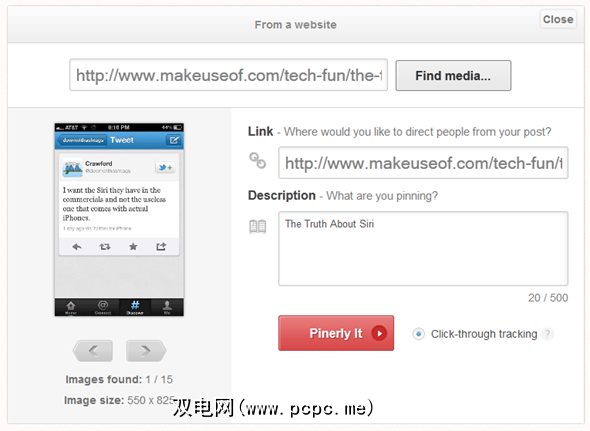 现在是时候单击“ Pinerly It "。 Pinerly将带您到Pinterest,在那里您可以像往常一样固定图像。完成后,让Pinerly知道您已将其固定在Pinterest上。