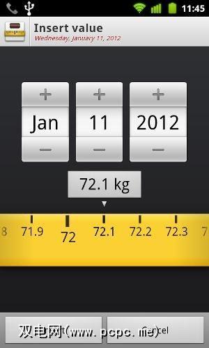 每天早上醒来时,我都会输入使用上面的屏幕显示我的体重。日期是自动选择的,向左或向右滑动时磁带会平滑滚动。这是一种输入体重的绝妙方法,而且一定能使您随心所欲地摆弄键盘。使用Libra,您可以创建快捷方式,以快速进入“ 插入值"屏幕,以获取最大速度。