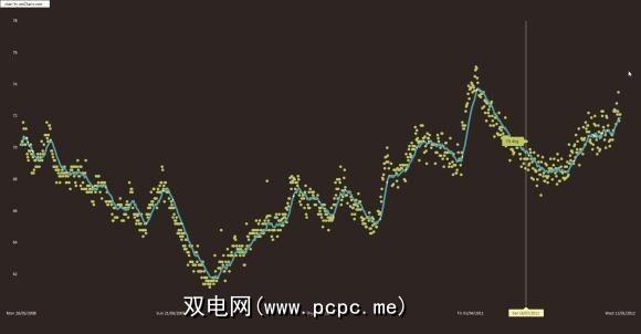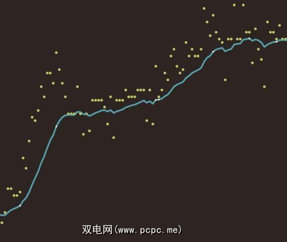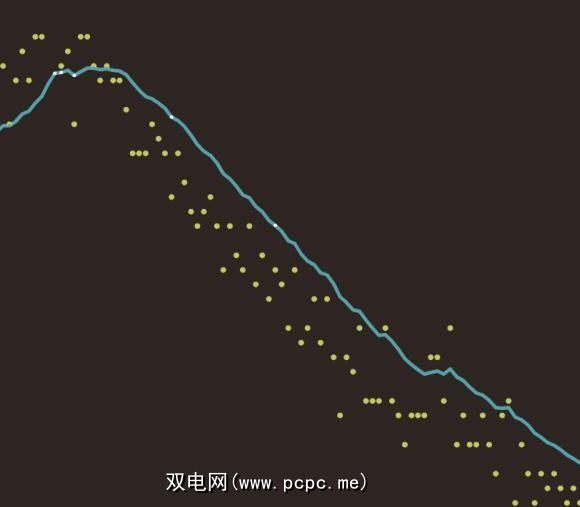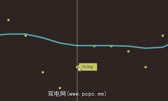 您可以看到,趋势线以及在该线上方或下方的点。点是单独的数据点,而线是移动平均值。拥有一条趋势线非常重要,因为这是查看体重走向的唯一真实方法。趋势线是根据Autodesk创始人约翰·沃克(John Walker)所著《黑客的饮食》中的公式计算得出的。 《黑客的饮食》是尝试减肥的极客的经典参考书,这就是Libra所采用的绘图系统。