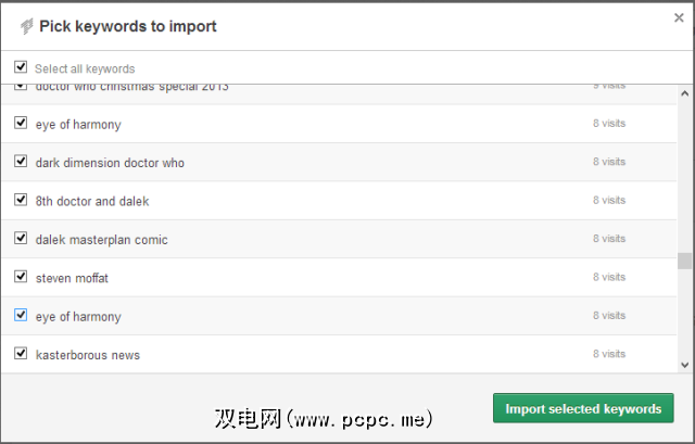 请注意,在此过程中,可能会有一些重复的关键字。在这种情况下,您需要花一些时间取消选择某些关键字,以免耗尽分配。