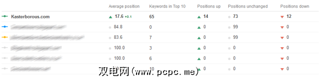 再次登录时,应该向您显示竞争对手列表和一个简要评估您与他们的关系。如果缺少竞争对手的网站,尽管该网站的结果会有所延迟,您仍可以添加新的竞争对手以将新的URL纳入列表。
