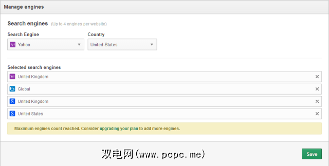 Bing和Yahoo!还可以添加搜索引擎,并且在此阶段您会了解到如果建议升级时可以添加更多搜索引擎,那么您就会意识到Postionly的强大功能。