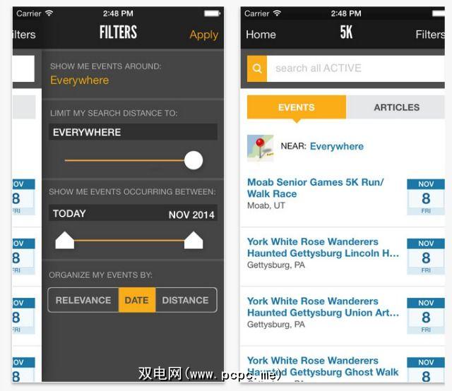 还有一个免费的适用于iOS和Android的Active应用程序。其有用的功能包括能够将种族和文章存储为收藏夹,以供日后阅读,在社交媒体上共享它们以及获取您注册的种族的方向。