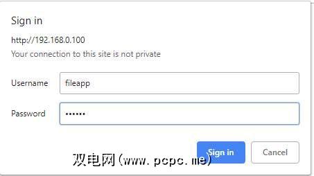 这是最简单的方法,因为您所使用的任何计算机都可以保证具有浏览器。只需键入FileApp文件共享菜单中列出的IP地址。出现提示时,输入在同一屏幕上显示的用户名和密码。