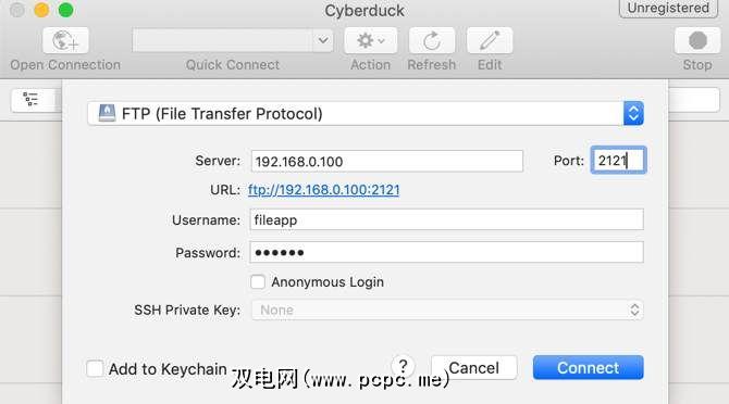 尽管FileApp的说明中列出的是“高级用户",但通过FTP进行连接并不困难。您只需要一个FTP应用程序。我们将使用适用于macOS和Windows的CyberDuck。如果您想使用什么,我们为Windows提供了免费的FTP客户端列表。
