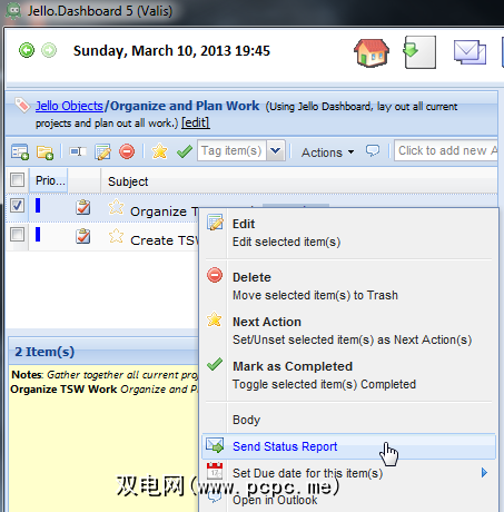 右键单击任务,您将看到更多GTD Outlook工具会显示出来,以帮助您管理事物。您甚至可以通过单击“ 发送状态报告"选项立即发布有关该特定任务的电子邮件状态报告。