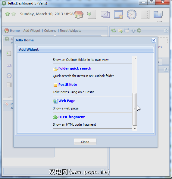 小部件该应用程序是我最喜欢的区域。您可以从字面上拖放窗口小部件-这是显示电子邮件,项目,任务,便笺,甚至是自定义HTML代码段或网页的数据区域。只要考虑一下增加应用程序的功能即可。如果您可以将网站显示在框架中,则可以将其嵌入到桌面仪表板中。