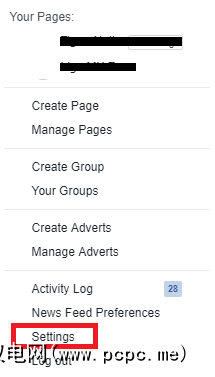 要设置Facebook的翻译功能,请找到网站标题右上角的小箭头,然后单击它,然后选择设置。