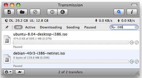 您可以通过单击“传输"顶部附近的标签轻松查看活动,下载,播种或已暂停的种子,如果您在“传输"中有很多文件,您也可以通过搜索来缩小范围。