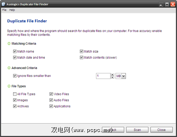 作为典型的免费,无损程序,“重复文件查找器"值得一试。 Auslogics重复文件查找器(版本1.5.2.55)在Windows(XP / 2003 / Vista / 2008/7)上运行。
