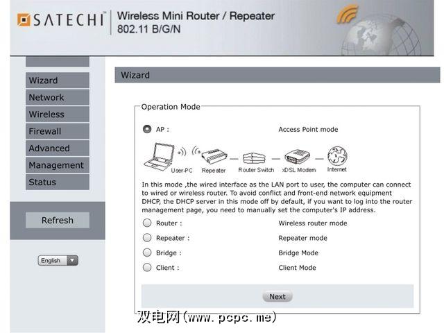 如果您的网络与路由器不兼容,或者您想连接到更广泛的网络上的设备,设置接入点模式。区别在于旅行路由器将通过网络网关传递IP。
