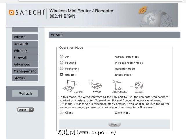 如果您住在只有无线网络的酒店,则需要将旅行路由器改为无线网桥。使用此模式将允许您在连接到酒店的Wi-Fi时保持预设的网络。