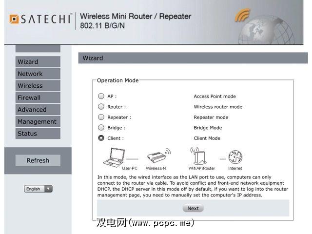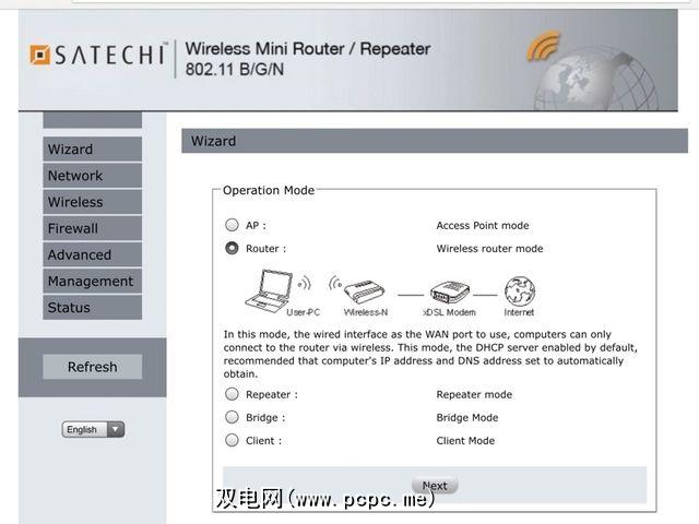 要启用此模式,请单击向导,然后选择路由器模式。然后单击下一步。