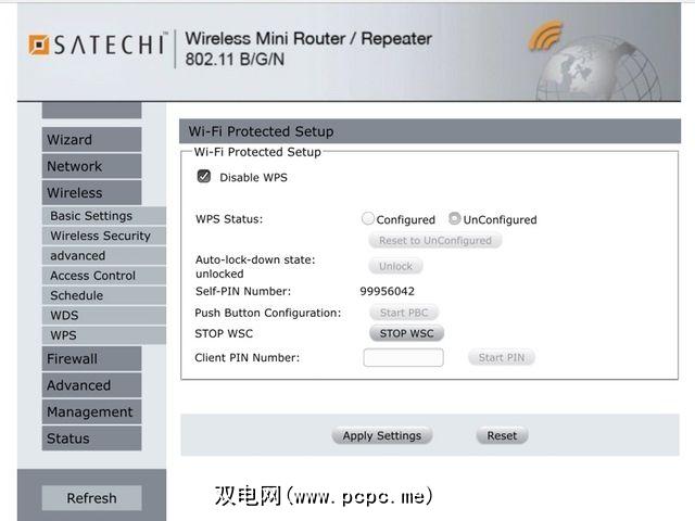 展开“无线"菜单,然后单击WPS。选中禁用WPS ,然后点击应用设置。允许路由器重启,然后我们将通过设置向导。