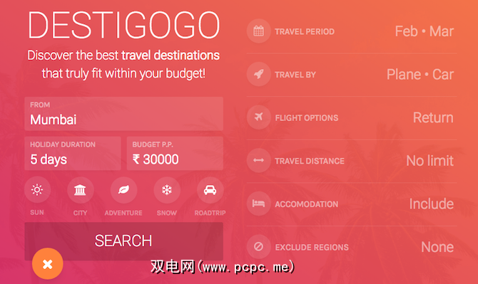 1。 Destigogo(Web):设置预算和喜欢,获取目的地