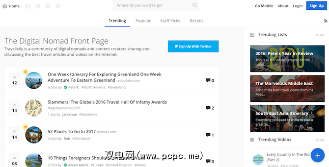Travelistly主要针对数字游牧社区,但它对于纯旅行也同样有用。该网站汇集了最佳旅游博客以及主要出版物的旅游相关文章。放在一起,您可以在一个地方收集大量精彩的旅行读物。