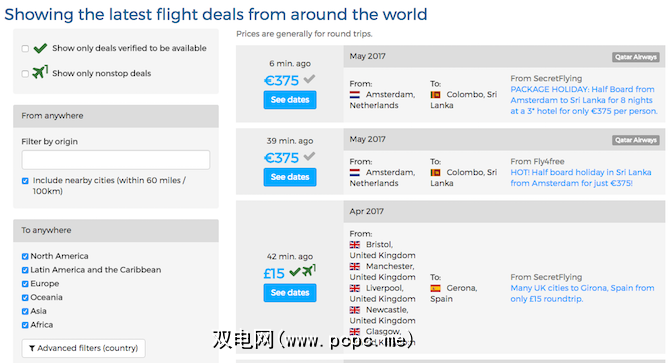 该应用要求您输入您的出发地。这样,它将向您显示当前所有从城市飞出的交易,无论是国内还是国际的。 “所有航班交易"会从所有其他资源中获取数据以查找最新交易。如果您只是想旅行而又没有特定的目的地,那将是一场改变游戏规则的体验。
