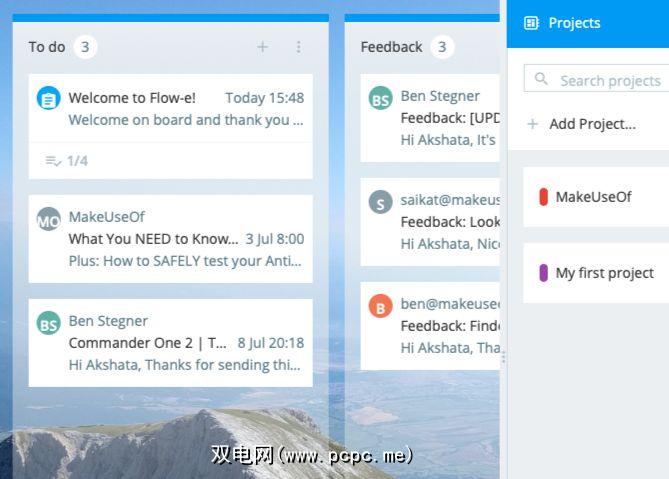 如果您的工作围绕收件箱,请获取Flow-e。它将您的收件箱转变为看板,将您的电子邮件转变为卡片。此处的想法是帮助您将电子邮件可视化为任务,并提示您完成任务。