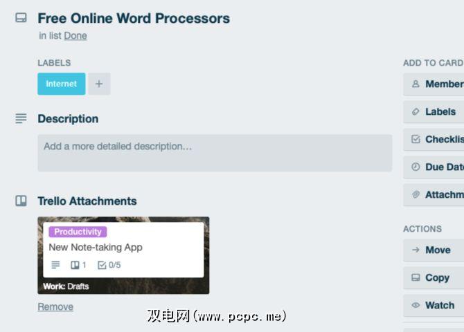 附件卡然后显示在当前卡的 Trello附件下。它显示重要的信息,例如卡名称,所属列表,卡标签,到期日期等。