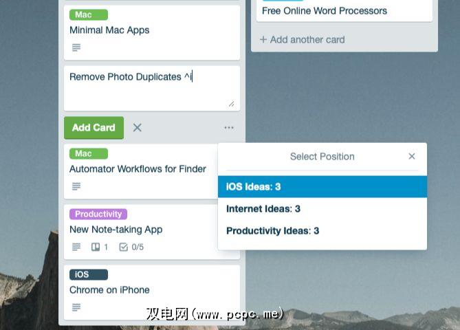 当列表中卡片过多时,您可能不想上下滚动以在特定位置插入卡片。多亏了Trello的下一个技巧,您不必这样做。它可以让您在创建卡片时快速移动卡片。