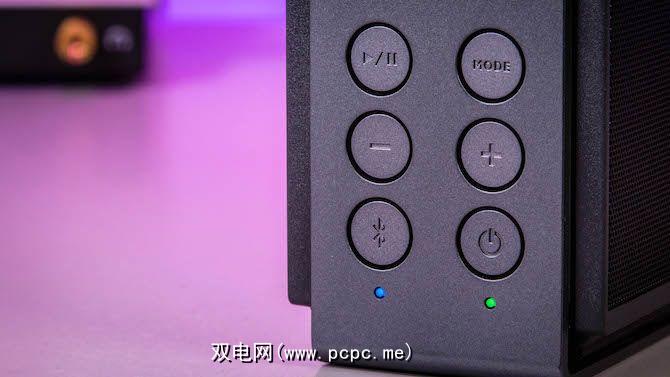 顶部有六个用于控制的按钮设置和音乐。其中大多数涵盖了您的标准播放/暂停/音量/功率,但是有一个按钮可以启用或禁用3D模式。 3D模式使用BenQ的专有设置来扩展您的音乐。这与低音增强或EQ剪切不同,它可以调节静电设置以产生更宽和更清晰的声音舞台,并且效果很好。