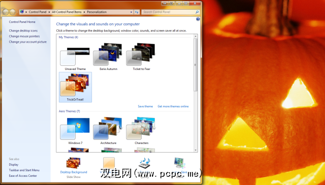 如果“捣蛋"主题是太温和了,以至于您看不到它,请务必查看Windows提供的其他万圣节主题,其中包括各种不同的壁纸,航空改装和少量新声音。为了安全起见,我们从Windows下载中心选择了主题,其中有大量Windows验证主题等待着您。
