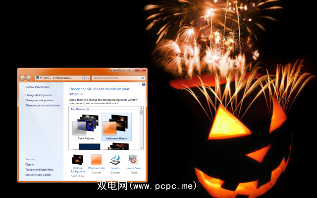 将安装您的主题,将您的桌面变成带有南瓜和猫头鹰,僵尸和空灵剧院的令人愉快的万圣节主题事件服务员,具体取决于您的主题选择。如果您已按照本教程进行操作,则您的桌面现在应如下所示:
