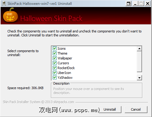 找到具有相应版本的“ SkinPack Halloween",选择所有选项,然后单击卸载: