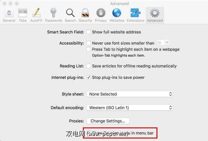 您需要在Safari中启用隐藏的“开发"菜单,然后才能更改用户代理。为此,请访问 Safari>首选项,然后转到高级标签。