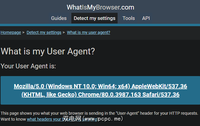 如果愿意,可以通过访问类似WhatIsMyBrowser的网站来查看用户代理。