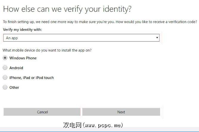 下一步,您需要选择是要使用应用,电话号码还是备用电子邮件地址进行验证。每种方法各有利弊。我们建议选择一个应用,因为它是最安全的应用,即使您的手机处于离线状态也可以运行。