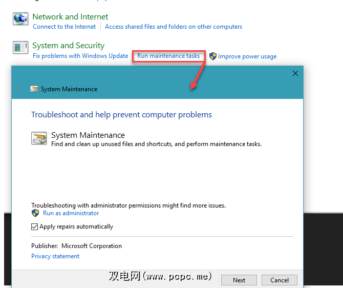 要访问性能故障排除程序,请键入控制面板 >进入“开始"菜单将其打开。在右上角,将查看方式条目从类别更改为小图标。选择故障排除,然后在系统和安全性下,单击运行维护任务。