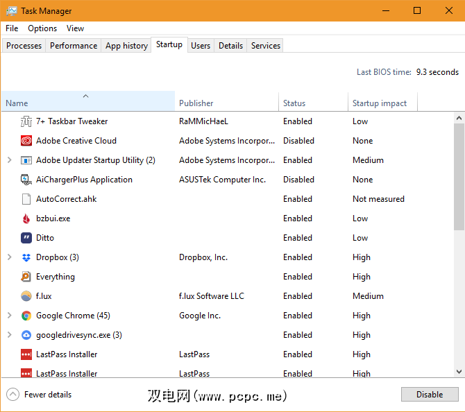 浏览列表,如果发现启动时不需要运行任何内容,请右键单击它,然后选择禁用。不要在此处禁用重要程序,例如防病毒或备份软件。如果不确定,请查看我们的一些要从启动中删除的项目的列表。一旦从列表中删除了一些,您的计算机应该会启动得更快。