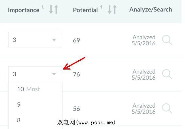 无论您出于何种原因对其排名,应用的重要性都会影响Moz赋予该关键字的“潜在"排名。如果您不想调整电位,那么最好的选择是将所有术语的重要性保持为默认值3。