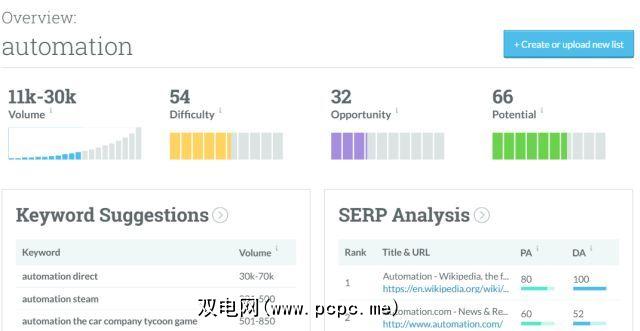 Moz –因为他们是真正的SEO专家,因此参与了竞争(他们称之为“困难" ")加入方程式。棒极了。但是真正令我印象深刻的是,它们还包含一种称为“机会"的东西。