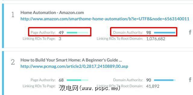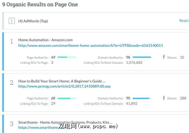 您会注意到,Moz包含了排名靠前的页面的有用指标-页面权限,域权限,将RD链接到页面以及将RD链接到根域。在我看来,页面权限和域权限是这里最重要的两个指标-它会迅速向您显示在该术语中排名靠前的人是否足够容易被击败(假设您可以很好地处理您自己站点的页面和域权限)。